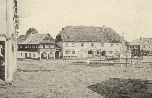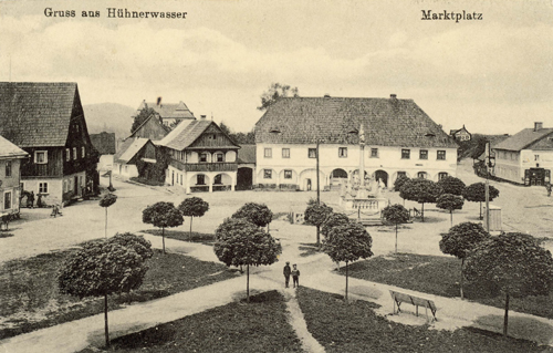 Das Gatterhaus (Mitte rechts) am Marktplatz von Hühnerwasser